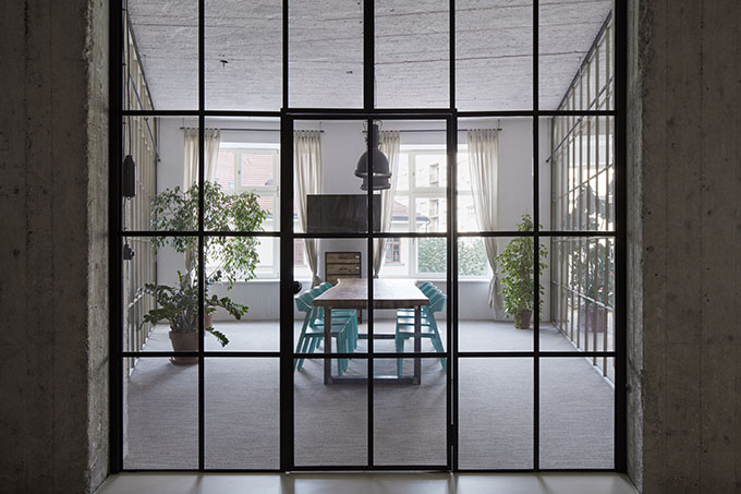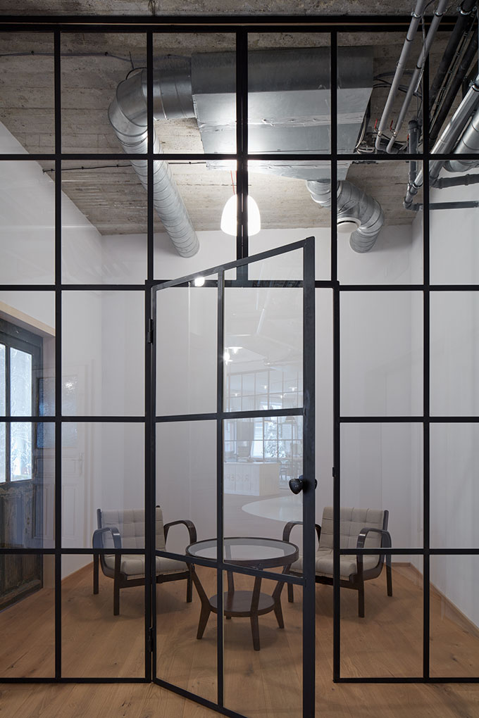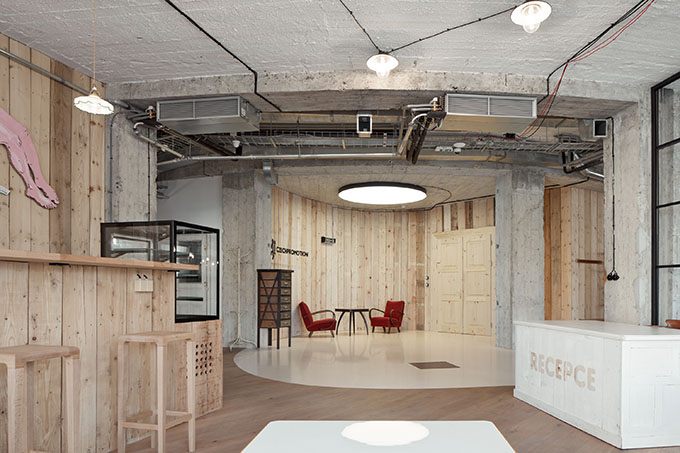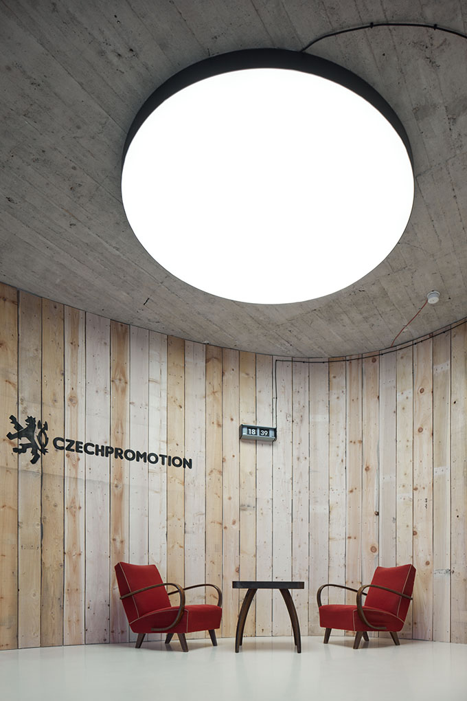 From the architects: The task to move the Czech Promotion communication agency in a mere three months from the famous Winternitz Villa by Adolf Loos to the unreconstructed premises of Karlín Palace with its own, albeit not as famous, history seemed fatuous, even naïve at first. Yet it was the time pressure which shaped the design itself, as well as the method of collaboration with the client and contractors. Purely a concept specified and defined the start of the process, leading to the overall unified vision, which prevented any subsequent disagreements or delaying discussions over individual parts of the proposal. Therefore, the extremely rapid establishment of absolute trust was required between the two parties. Such an approach was risky, but at the same time intensely motivating to all involved persons.