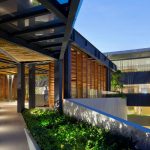 The façades’ graphic system stems from the climatic logic. To the east and to the west, the protruding polished-aluminium vertical needles offers efficient protection from the sun. The whole generates an abstract composition with subtle texture variations. The image changes according to the view angle: almost invisible when facing them, the needles create large paintings when seen sideways.