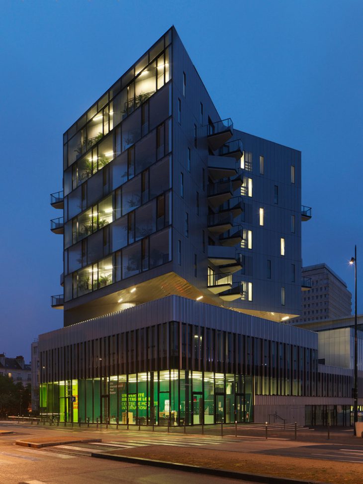 – The UBL (Université de Bretagne Loire) offices with their entrances on the west façade.