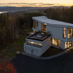 Inside, the architectural narrative unfolds into a harmonious blend of fluid, curved forms and a restrained palette of natural materials. The expansive living space, thoughtfully oriented towards the panoramic views, harmoniously blends indoor and outdoor realms through floor-to-ceiling glass walls. This integration of space not only amplifies the sense of openness but also invites the tranquil beauty of the surrounding landscape into the heart of the home.