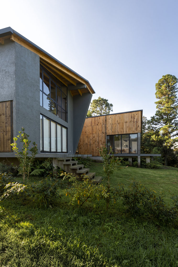 From the architects: Located on a plain inside the forest of San Simón el Alto, Estado de México. Casa V is designed to enjoy its surroundings. Sunlight, trees, sky and air are always present and flowing to the different spaces of the house. The user always protected from the environment can partially touch nature.