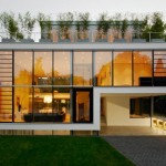 Block. The block houses a so-called landwinkel, a large shop where local food products are being sold. It functions as one of the anchor programs of the whole Groene Kamer development and is therefore prominently placed on top of the earthwork. The omnidirectional block manifests itself as a transparent greenhouse with a "wooden sculpture" inside. This sculpture is designed as a cross shaped volume which allows for open corners in the building. The corners function as indoor gardens that literally bring the outside inside and vice versa. The cross volume is carved open on the ground floor, introducing a continuous and flexible floor plan that connects the corner gardens.