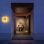 The architectural design of the Van B Residences also stands out for its aesthetic and functional elements. The large bay windows and balconies not only provide ample natural light but also create a visual connection between the street, the homes, and the surrounding trees. The building’s three-dimensional shell, composed of concrete and copper-colored metal framing, gives it a sculptural quality. The gallery lofts on the ground floor, with their glazed facades, open up to the courtyard, blurring the lines between indoor and outdoor spaces.