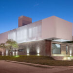 Attention to material and color has been a crucial aspect of the building’s design philosophy. To complement its modern form, a palette of simple and sober colors has been selected. This choice focuses attention on the building’s architectural form rather than its decoration, inviting onlookers to appreciate the interplay of shapes and shadows that define its facade. At night, this effect is magnified by strategically placed lighting that highlights the facade’s unique features, creating an arresting visual display that enhances the building’s presence in the neighborhood.