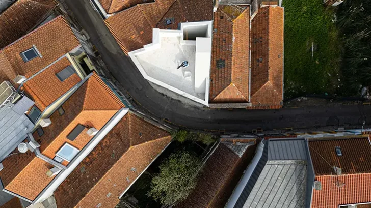Paulo Martins Arquitectura e Design presents Beira Mar II, a compact house set within the dense fabric of Aveiro’s Beira Mar district. The project begins with constraint. Streets shift, plots compress, and the site resists regular geometry. The design accepts this condition without correction. It builds from it, using the irregular plot as the starting point rather than a problem to resolve.