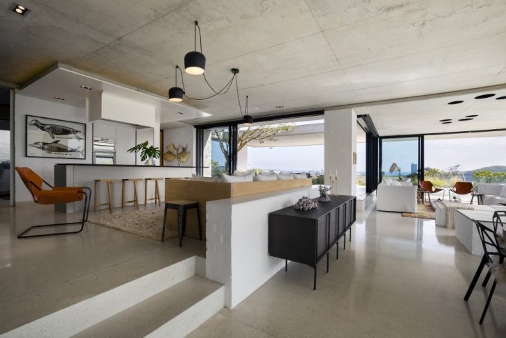 SAOTA designed an authentic holiday home in Pringle Bay, South Africa – the Restio River House. It’s an easy living yet sophisticated family home. The interior was designed by ARRCC together with the owner to ensure an eclectic mix of easy-living and comfortable furniture throughout. The house sits on the banks of Buffels River and faces due north while the westerly facades of the lounge and terrace look towards Cape Point. Take a look at the complete story after the jump.