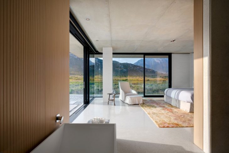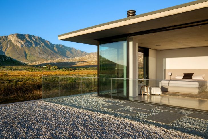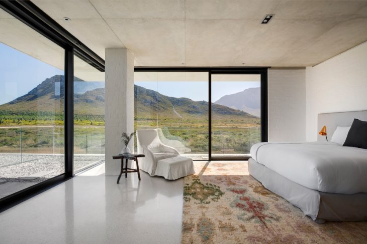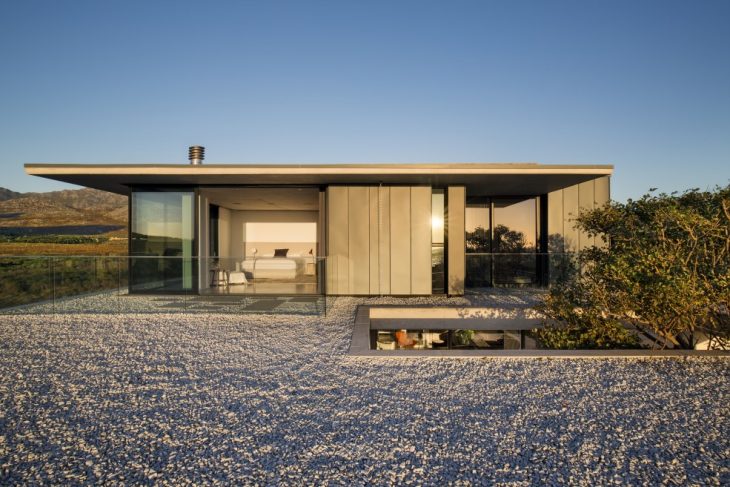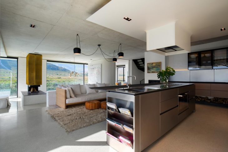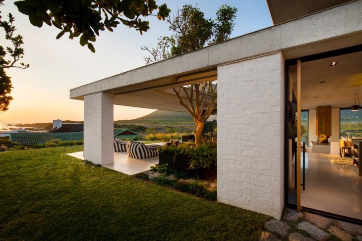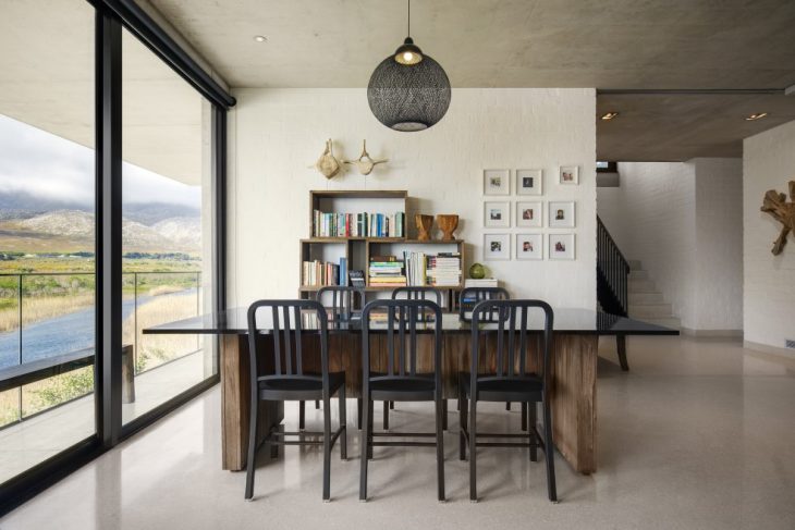 From the architects: Perched on the banks of the Buffels River, close to its mouth in Pringle Bay – a small coastal town less than 100km from Cape Town, South Africa – this house has an easy living permanence that shakes off the salty winds and lets in the sun and the natural beauty of the surrounding indigenous vegetation and mountain valley.