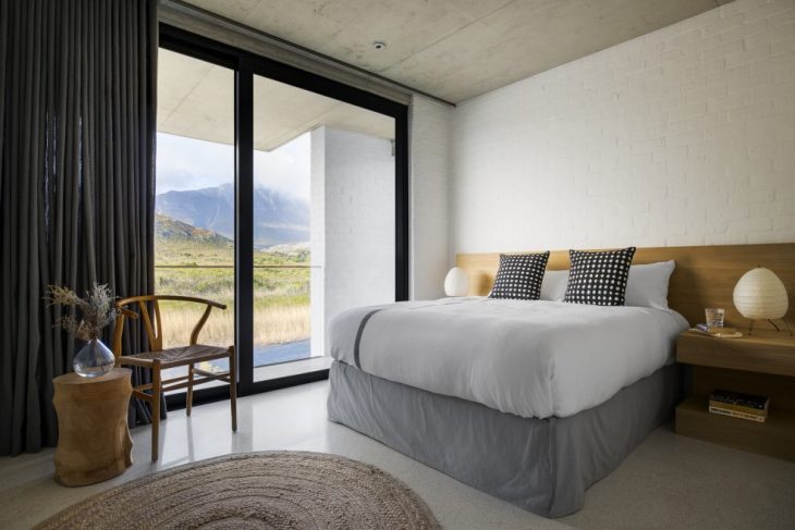 Artwork have been carefully curated and include artists such as Deborah Poynton and Albert Coertse. The art is limited to key areas of the home for maximum impact. The neutral colour palette and modest furniture pieces of the bedrooms allow the incredible views to be the focus as ever-changing artwork each day.
