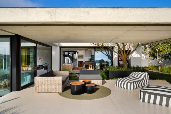 The architecture is clean and robust. It has a gravitas to it. The materials are hard wearing and resistant to the tough coastal climate and its winds that periodically sweep the bay. The planning of this SAOTA-designed family holiday home is nuanced and sophisticated, built to fully grasp the daily rituals of holiday living.
