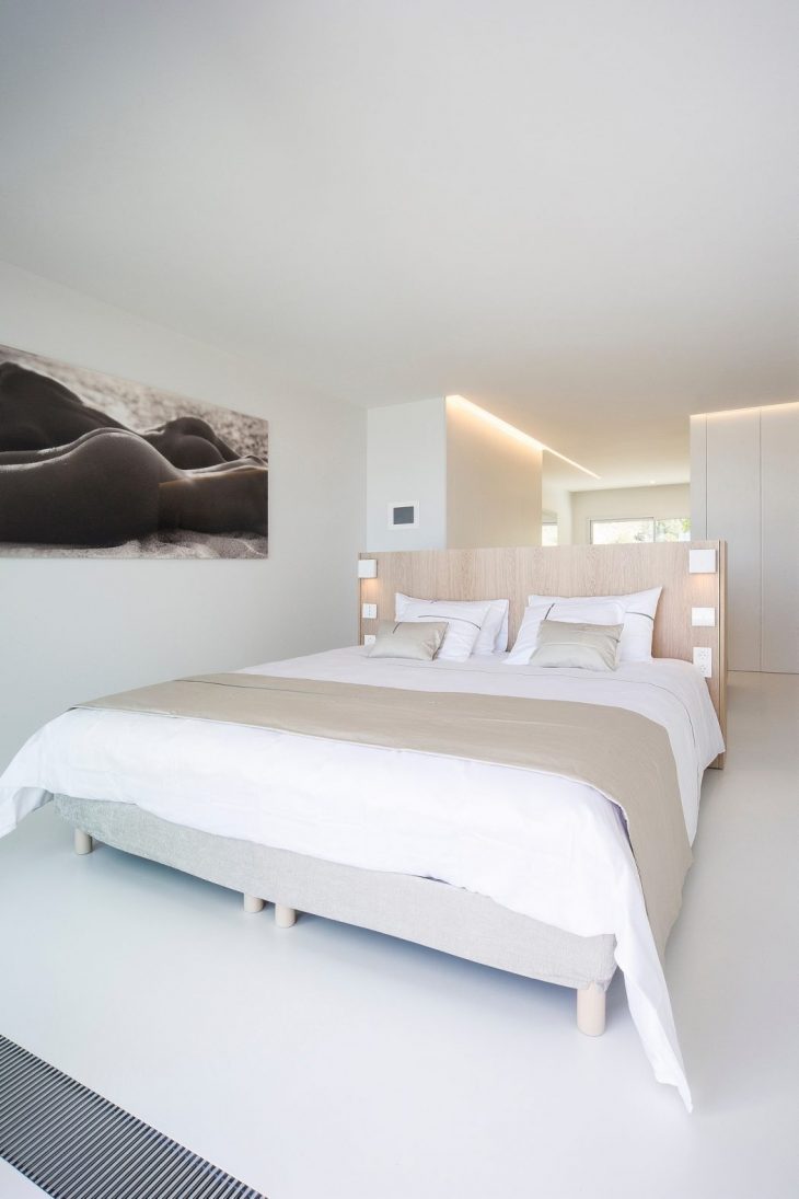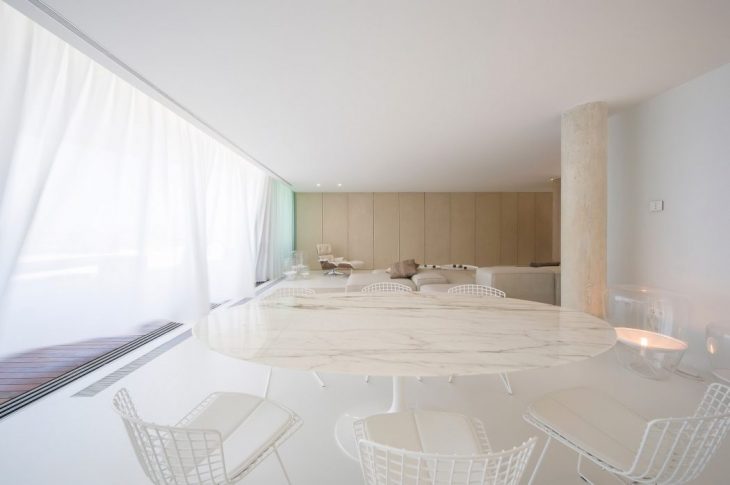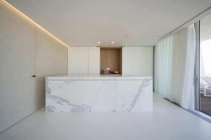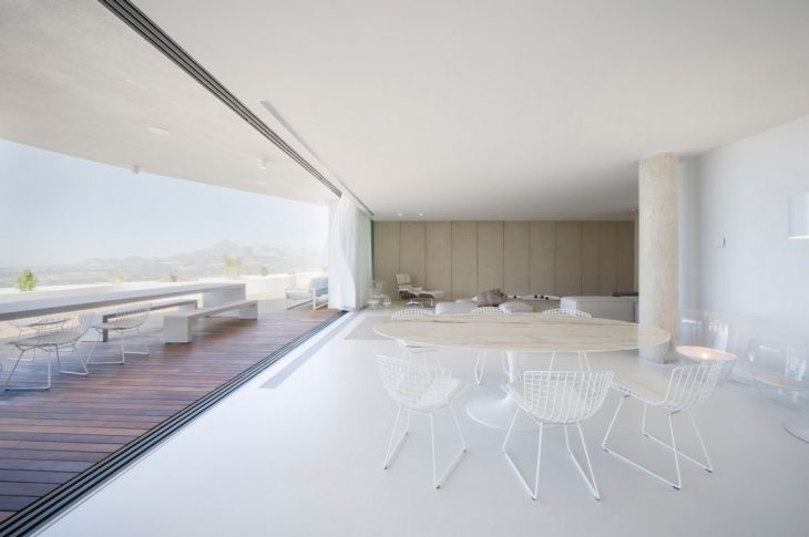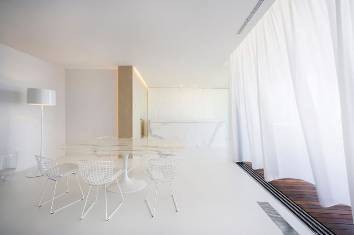 Filip Deslee designed this modern rooftop apartment situated in Alicante, Spain, in 2017. Interior and exterior merge into a whole, offering magnificient views at the Mediterranean. Large windows blur the boundaries between inside and outside spaces even more while the white floors reflect the sunlight in all corners of the space. Take a look at the complete story below.