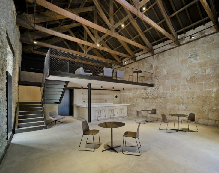 An interior redistribution of the existing surface area is suggested, as well as a small expansion which takes advantage of the spatial dimensions in order to, by creating a double-height, offer the possibility of savoring the building from unknown points of view, placed on different levels and allowing to put value on highly important and singular elements such as the original wooden structure that forms the roof.