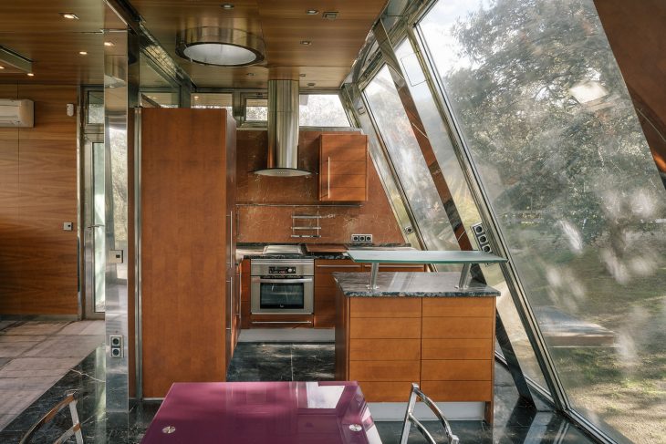 Only three materials are used: rusted steel structure, glass facade and cherry-tree wood interior, brining Nature inside. The passing of the seasons generates new senses and emotions within the design.