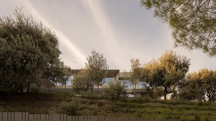 Together, these materials create an architecture that remains precise and restrained. The house achieves a contemporary identity without overwhelming the wooded site that surrounds it. Through its geometry, organization, and material expression, House Among Holm Oaks establishes a thoughtful dialogue between built form and natural environment.