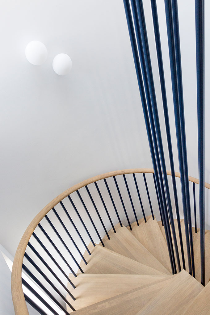 The project included a rear extension, complete internal refurbishment and new landscaping. Original internal partitions were removed to create flexible open plan living spaces. A new winding stair is finished in powder coated steel and oak. This compact stair results in significant additional useable floor area on each level.