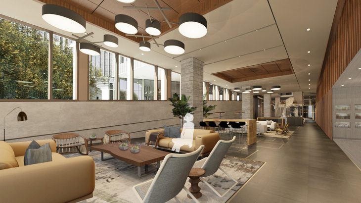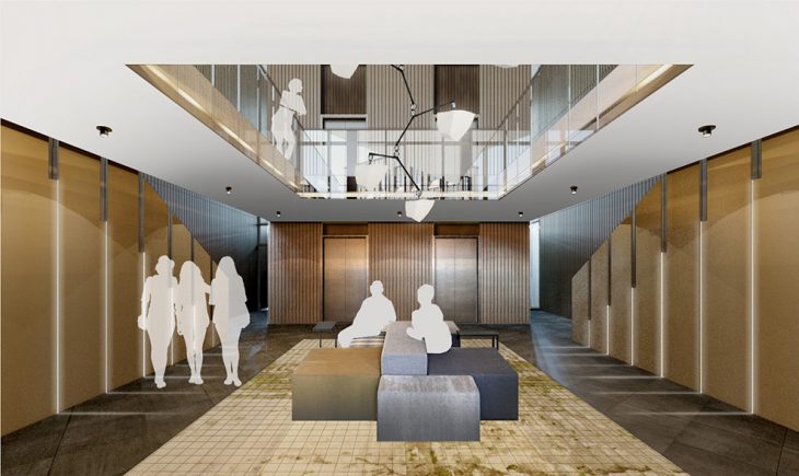 At the ground floor, the brick will be lifted, replaced by a glazed first story to expose a unique public space intended to enliven the street and promote connectivity. This interior plaza will also serve to extend the terminus of the main thoroughfare, Main Street, with a direct connection to adjacent Water Street. The move will facilitate access between the adjoining areas and allowing further retail space to be integrated into the surrounding pedestrian mall. The project is targeting ambitious sustainability goals, with completion set for 2022.