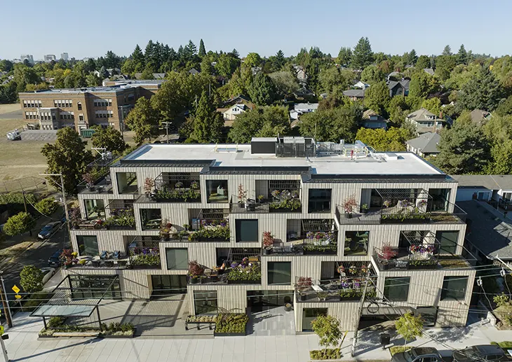 In Portland’s dynamic Division Street district, the Ellen Browning Building by Hacker redefines aging in place through architecture rooted in friendship, care, and community. Conceived by a group of close friends determined to preserve their social bonds into later life, the mixed-use residential project transforms the co-housing model into a refined, urban expression of independence and connection.