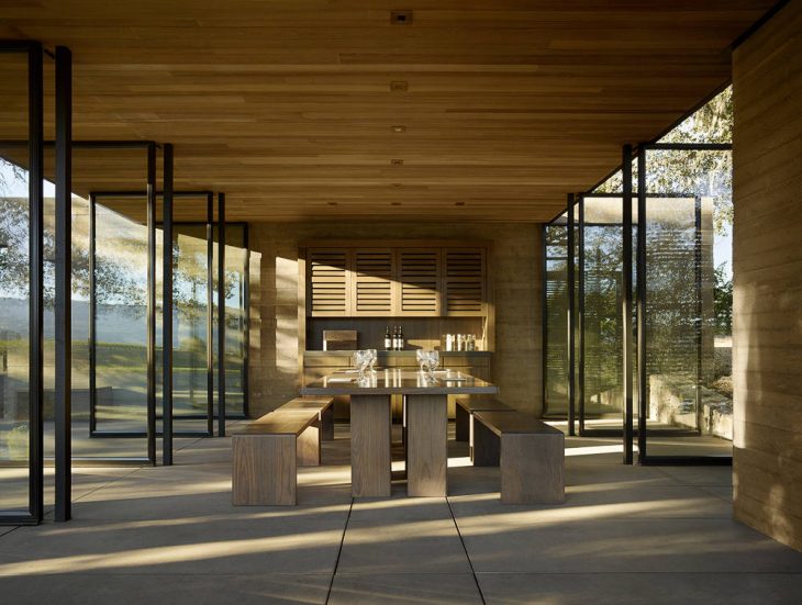 Walker Warner Architects designed this beautiful pavilion situated in Napa Valley, California, in 2014. Take a look at the complete story after the jump.