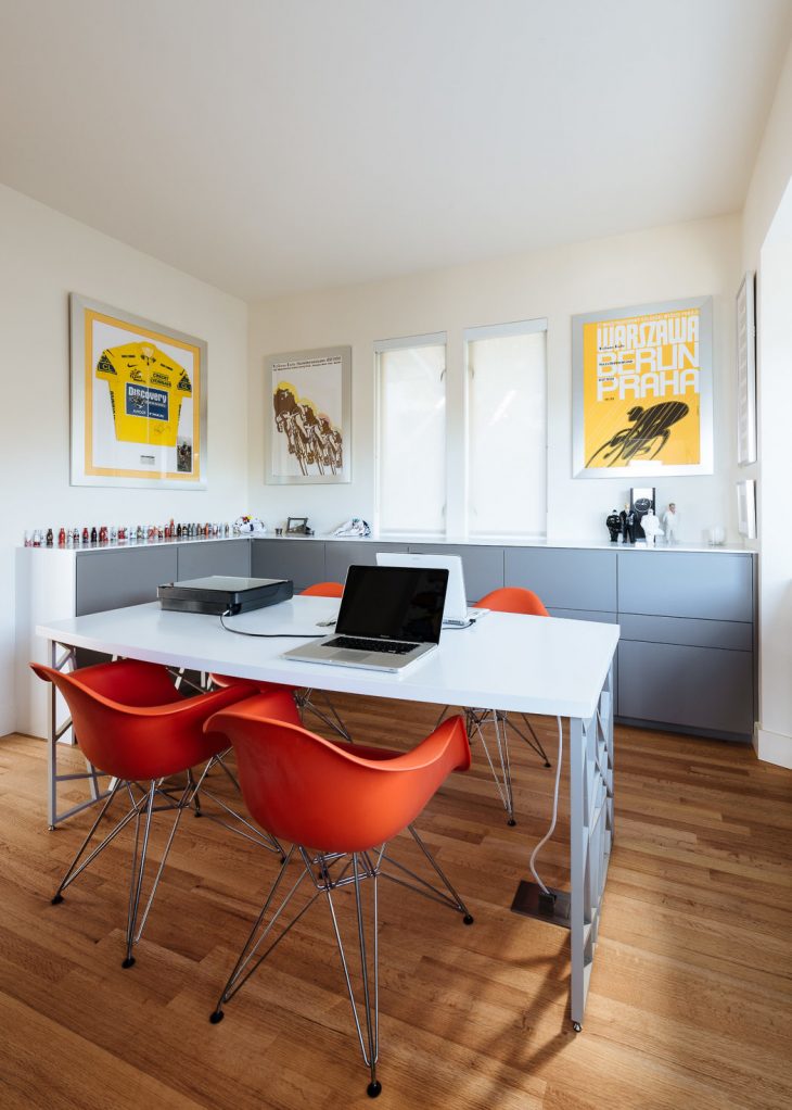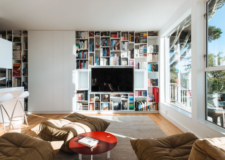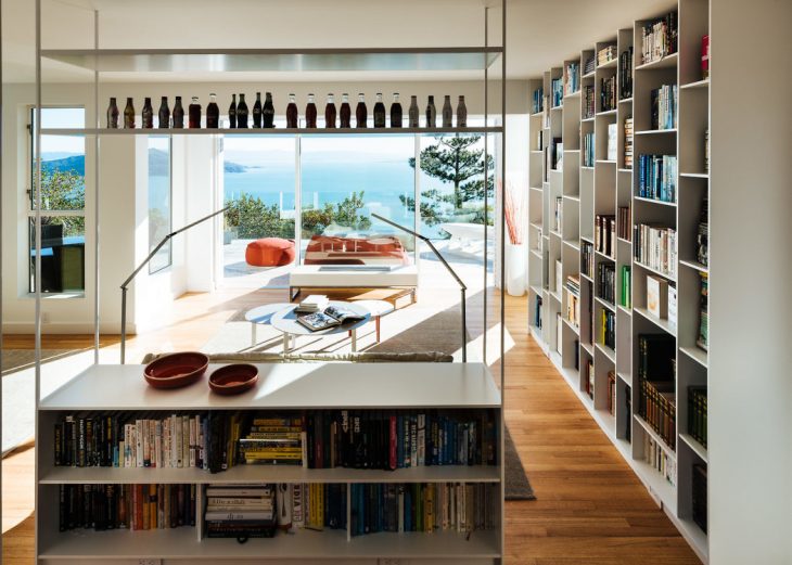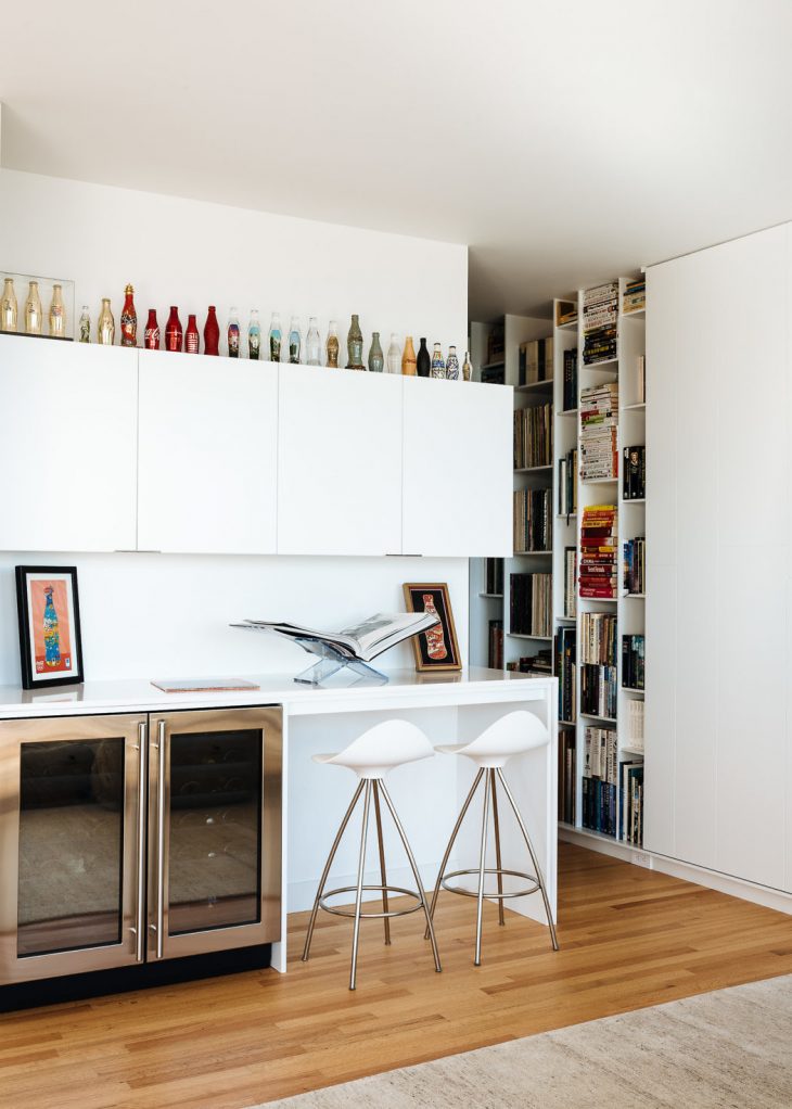 From the architects: It was on a quick stopover going from Hong Kong to South America that this newly-retired couple decided on a whim to lay roots in Sausalito, California after a decades-long residence in Taiwan, Japan. The original space, a 70’s era home with panoramic views of the San Francisco Bay, lacked the unique charm and character desired to match the client’s eclectic tastes. Seeking to infuse a sense of their unique personal style, the Safferys tasked Feldman Architecture with the challenge of transforming the property into a sophisticated library of vinyl records, design books, and vintage Coca-Cola bottles; a place to appreciate their collections while soaking in the ever-changing view.