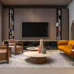 Instead of ornament, Simposio featured a single, deliberate fold in its upholstery. The fabric, sourced from House of Lyria, adapted organically to its form, much like skin responds to movement. The sofa’s foot design, subtle but intentional, created tension on the surface, adding texture that suggested a body had just shifted or would arrive at any moment.