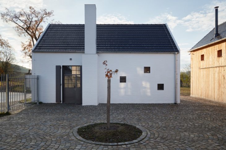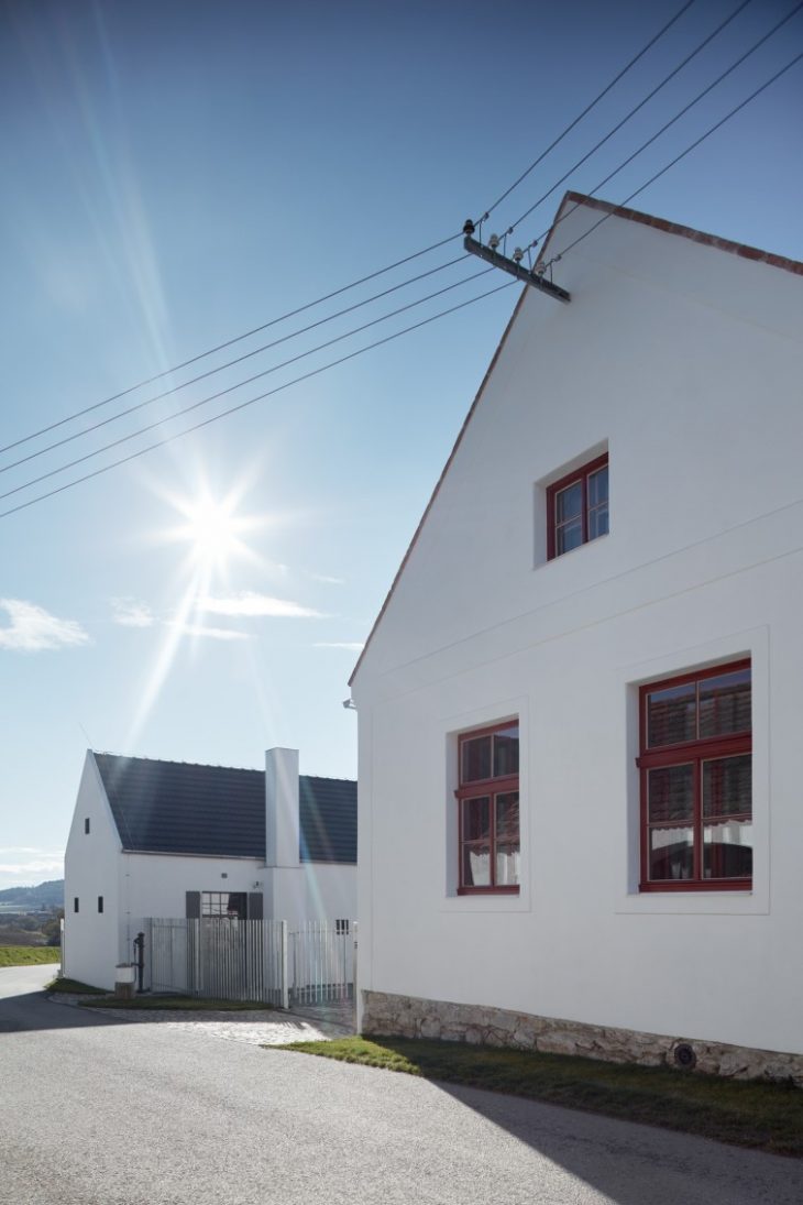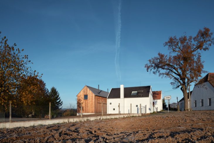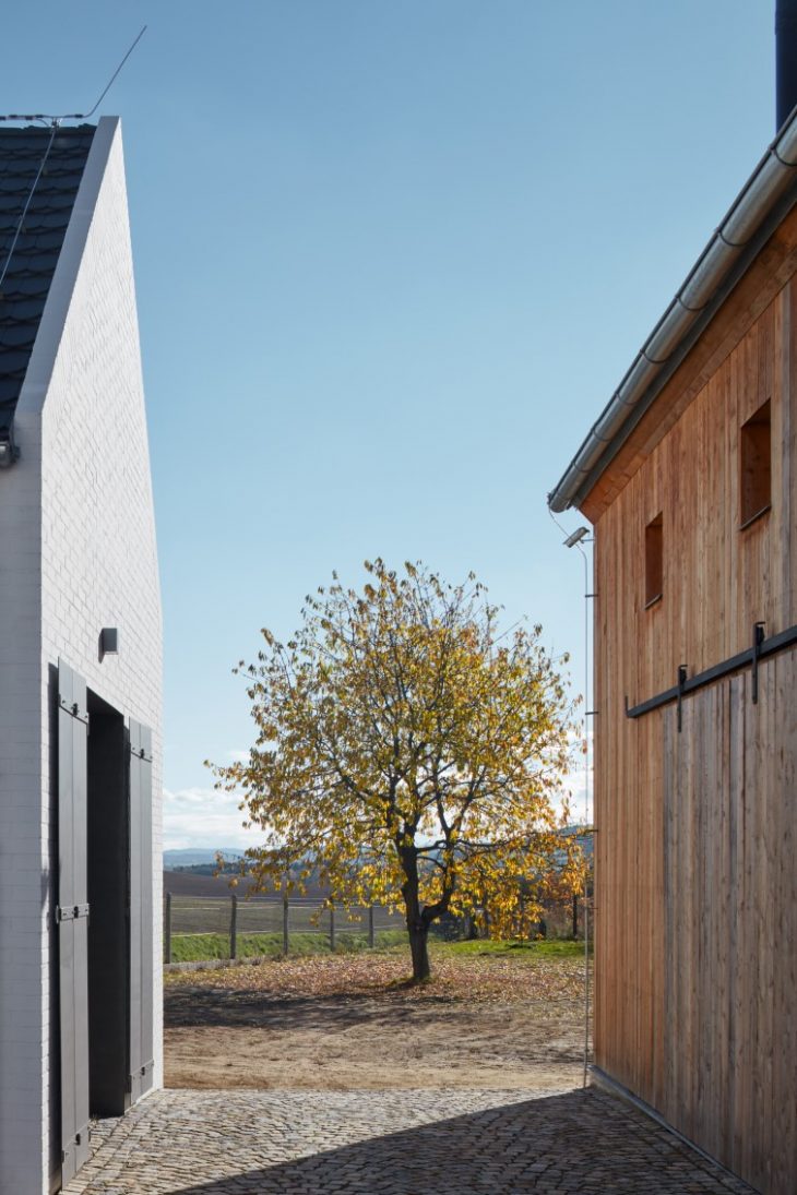 Reconstruction proposal came mainly from the original plan and the location of buildings, which were in very poor condition though. This resulted in the demolition of all modern outbuildings, including roofs and trusses. Only the basic materials and some main supporting walls were preserved. Then new fermentation building and accommodation in the attic was built as well as the wood house with a garage in the place of the fallen barn. The distillery is a completely new and detached building, which creates together with the original buildings a partially enclosed and protected courtyard.