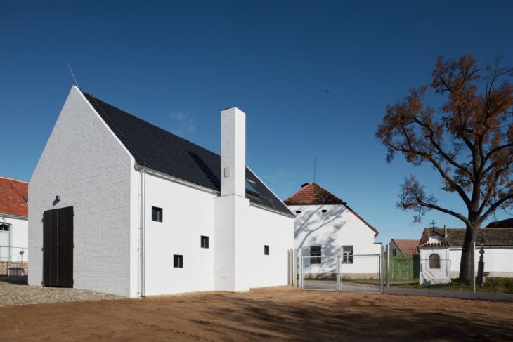 Architects’ effort was to preserve most of the original architectural features of buildings and where it was no longer possible to replace them with similar characteristic details transferred from other buildings in South Bohemia. For new buildings, we chose new materials, contemporary but with respect for the original buildings. So, for example, it resulted in a solution where all the original roofs have red roof tiles, so-called “Beaver”, while all the new buildings have the same roofing material but black.