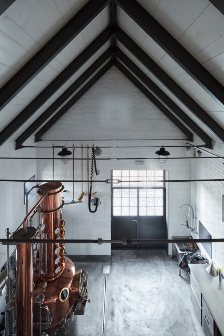 Proposal of the buildings, the facades and shape of the roof, were significantly influenced by the immediate environment, and thus traditional solutions to both shape and material have been used. Most of the facades has a classical lime plaster, parts of buildings with wooden supporting structure are lined with wooden planks, only the distillery itself has surface of solid bricks painted white as an accent of significance of the building.