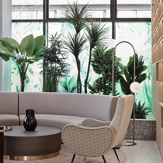 The sunken and semi-enclosed book bar serves for reading and negotiation, with publications of TASCHEN around and the wooden bookcases and furniture setting a soft tone. The starry ceiling is a highlight of the space, which makes it light and vivid and creates a lively atmosphere for reading and talking.