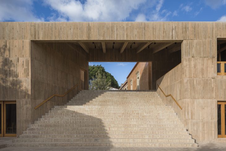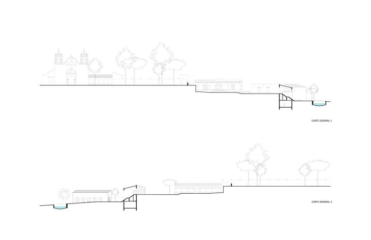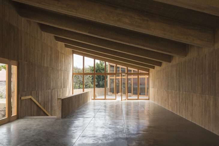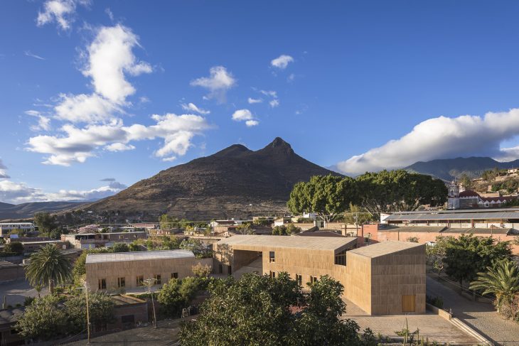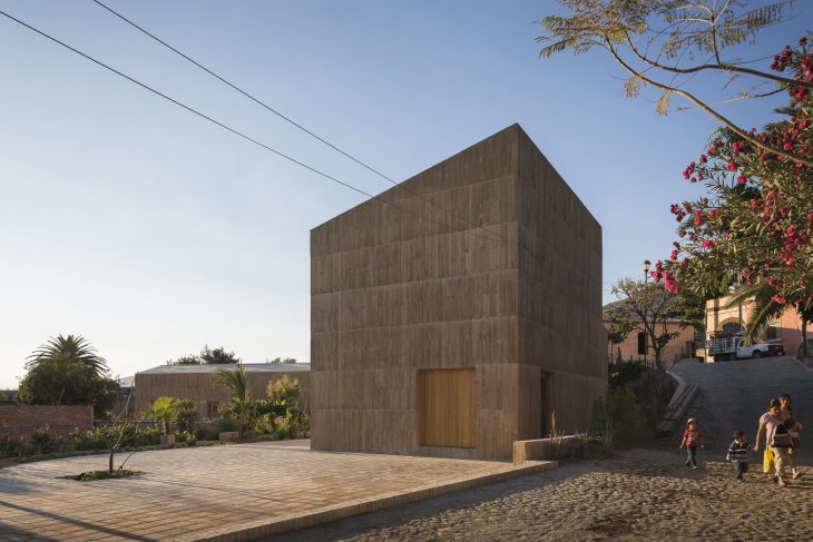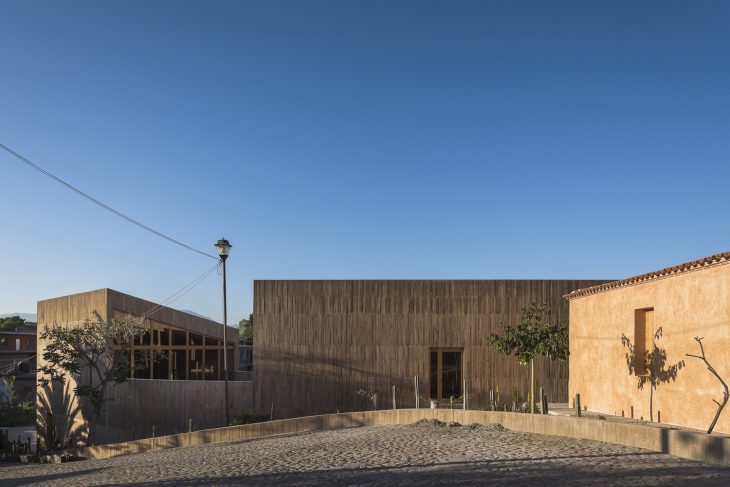 This Community Cultural Center exhibits the archeological and textile wealth of Teotitlán del Valle, a village in the Mexican state of Oaxaca. The principal volume, facing the village square, houses the Museum which will host the collections and activities of the present Teotitlán Museum of History. In formal terms, the project is governed by the aesthetics of the immediate context, which determine the height, color, and materials used. The secondary volume contains the Municipal Library and a service zone. The area occupied by both buildings on the site represents just 18% of the whole surface area, leaving a large public space of plaza and gardens. This helps to improve the pedestrian routes passing across the site and connecting with the main square, inserting the new public spaces created by the Cultural Center into the circuit of existing plazas that define the urban structure of the village.