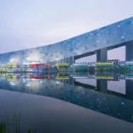 To prevent monotony across the expansive facade, the design strategically integrates outdoor patios that excavate voids into the volume. These openings deconstruct the building’s linear form, introducing a play between solid and empty spaces. This approach not only softens the building’s visual impact but also improves the interior environment. Natural light filters through these openings, casting shifting patterns throughout the day.