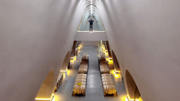 To prevent monotony across the expansive facade, the design strategically integrates outdoor patios that excavate voids into the volume. These openings deconstruct the building’s linear form, introducing a play between solid and empty spaces. This approach not only softens the building’s visual impact but also improves the interior environment. Natural light filters through these openings, casting shifting patterns throughout the day.
