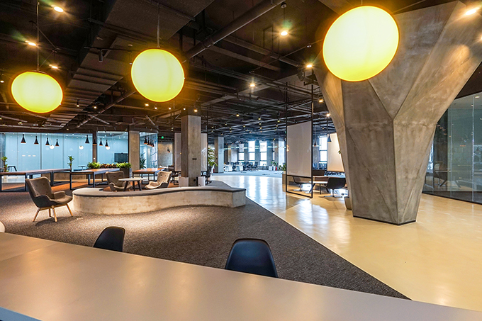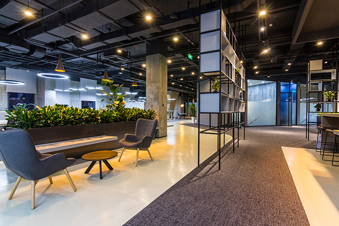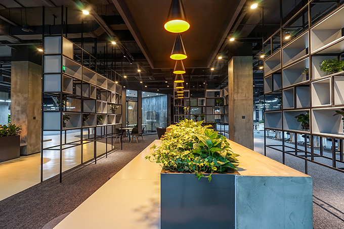 Refreshing green plants and golden light dilute the sense of “massiveness” of the industrial tone, and render a more comfortable working environment. There is a staircase-like meeting area, which is very flexible. Large rectangular desks and open flexible workstations are arranged in a mixed way, which are adaptive to independent and collaborative working modes. The floor surface is characterized by abstract tire tracks as well as irregular division, which is consistent with the brand’s human-car interaction genes.