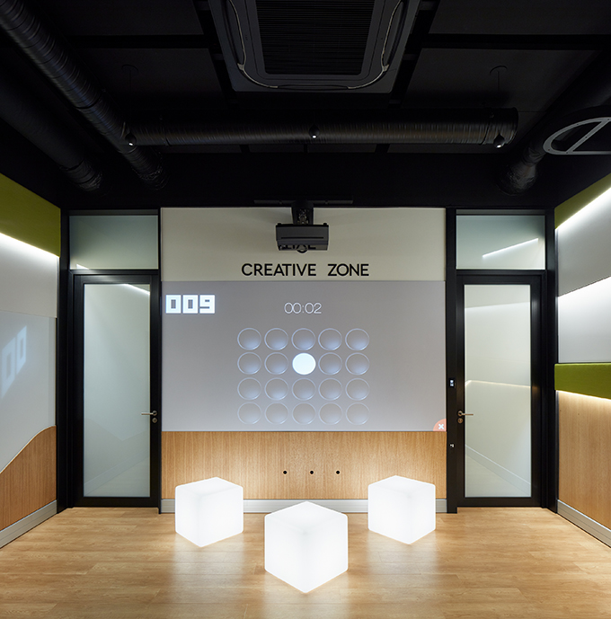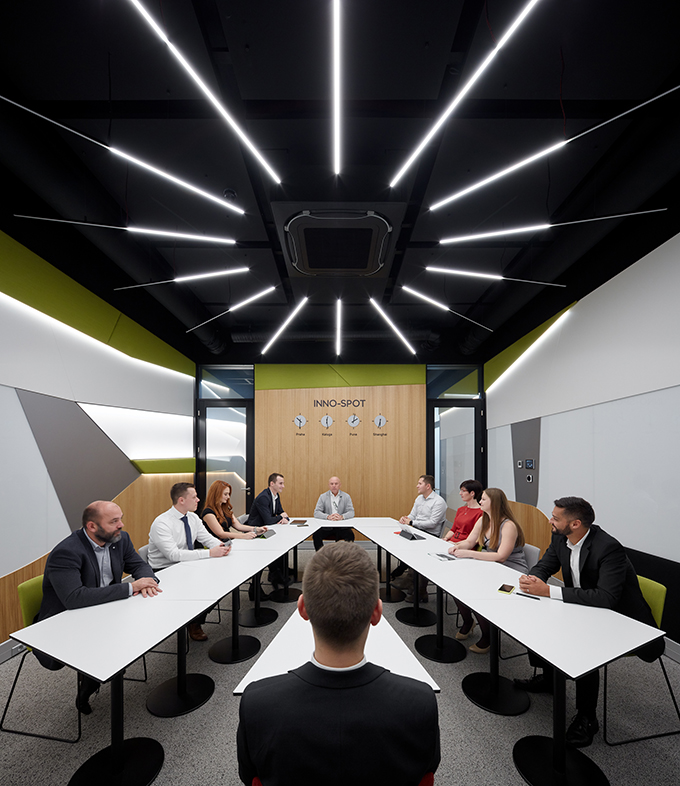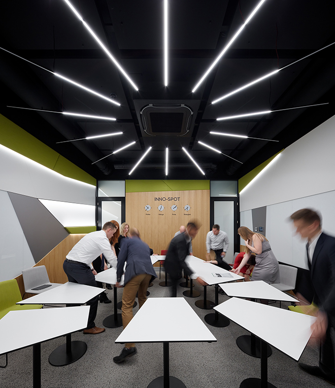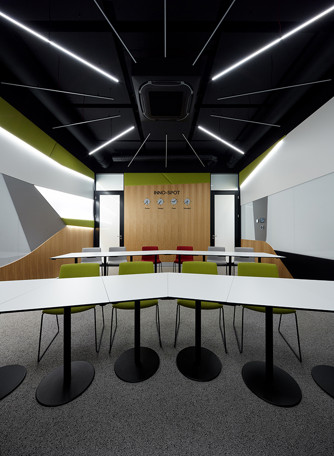 „The design concept of the innovative spaces in department G, building U20 in MladáBoleslav, is based on the idea of small work corners and a flexible environment equipped with smart technologies. We started off with a standard meeting room and created two separate spaces, an INNO-SPOT meeting room and a CREATIVE-ZONE, freely accessible and free to use by our employees at any time during the day. We created spaces that are cozy and comfortable, so that our colleagues feel at home and want to keep coming back. We also introduced new technologies that are entertaining and interactive, because entertainment creates motivation. There is an option for a short workout and a stretch during the day, too. The most important aspect though is that we connect people to exchange ideas and inspire each other in a nice environment filled with high tech.“ (Zuzana Mach?, innovative project’s manager, Quality management, ŠKODA AUTOMladáBoleslav)