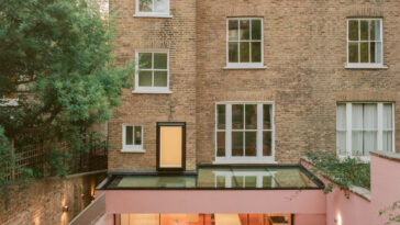 Unknown Works has masterfully transformed this London townhouse into a cohesive and interconnected living space, incorporating stepped and terraced elements complemented by dusty pink pigmented surfaces that evoke the iconic style of Barragán