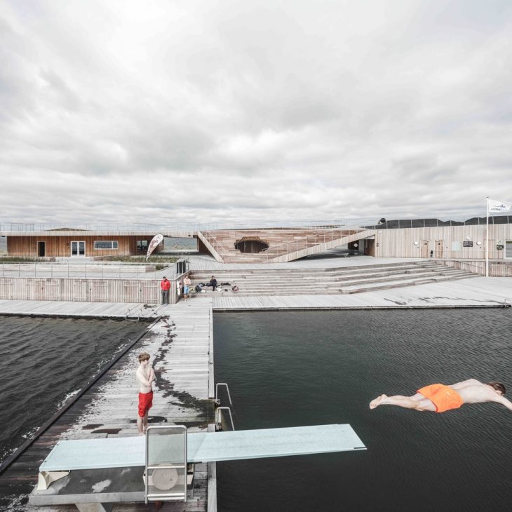 The vision behind the project is to encourage direct contact to the fjord by establishing better accessibility from land to sea. At the same time, the project aims to strengthen the story of the landscape with a multi-functional building structure that frames the many potential activities on the water. The precise cut between the two water spaces is defined by the isthmus binding together landscape and built structure – exactly where the experiences of fjord, activities and park become one.