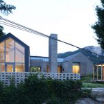 The laconic character of the exterior is preserved in the interior space of the house as well. The decor is reduced to bare minimum, represented by its structural materials. Compositionally, the house enjoys a 180-degree exposure to the surrounding space. The sliding doors unite the ground floor space with the garden. The boundaries are blurred between the interior space of the house and the evolving landscape.
