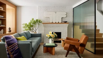 Throughout the townhouse, color accents in various shades complement the use of valchromat, stone, and metal, creating a harmonious and exciting environment. Olbos Studio’s design seamlessly blends the Brooklyn brownstone’s historical charm with modern touches, resulting in a space that is both timeless and contemporary. The combination of luxurious and modest materials with their specific textures adds depth to the space, while the vibrant colors imbue a sense of playful boldness that perfectly reflects the homeowners’ personalities.