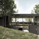 From the architects: Bedrock House is a sequestered house for one, for two, for a couple; a house which draws its power and identity from the energy of its location and its own particular scheme. The house absorbs the natural context into which it is placed: the Mediterranean landscape, the topography of the ground, the unobstructed vista of the sea, and employs them as generators of a specific architecture. Situated in the woods, the house becomes a confluence of three different biotopes: the preexisting oak forest, the craggy Mediterranean garden with its plants and the large stretch of water – the pool – all surrounded by palm trees.