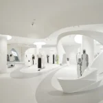 Inside, white surfaces contrast with polished wood finishes, creating an environment that feels bright yet warm. The restrained palette accentuates the clarity of forms, improving the home’s visual coherence while maintaining a welcoming atmosphere. The design avoids excessive ornamentation, relying instead on material authenticity and precise detailing to establish its architectural identity.