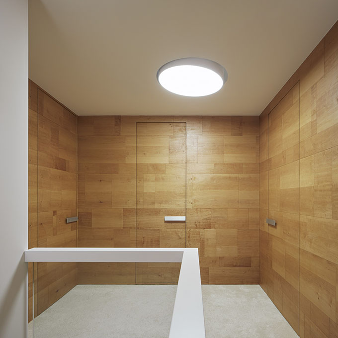 The light concept is an essential part of the whole project. It creates not only moods, but it literally breathes life into matter and celebrates materiality – from the stone wall in the main living room, for example, an original artistic installation is created by pressing the switch.
