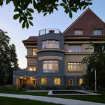 At the rear of the site, a structure from the 1980s completes the architectural sequence. The renovation reshaped its volume through the addition of cantilevers and a stone wall that creates a private patio for the bathroom. Material choices draw from earlier sections of the house, allowing this later addition to align visually with the older wings.