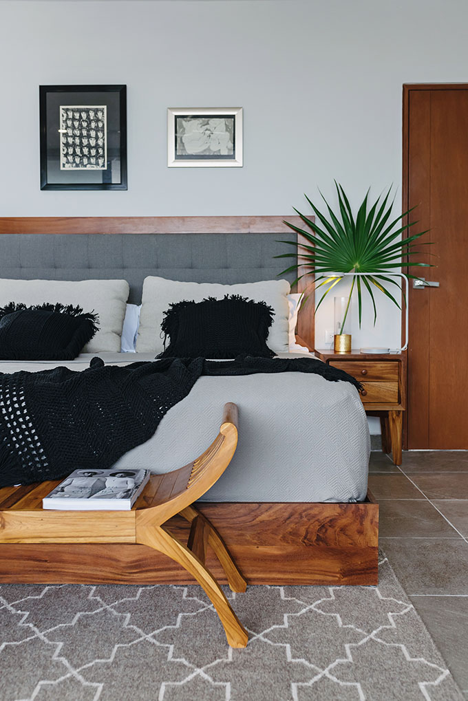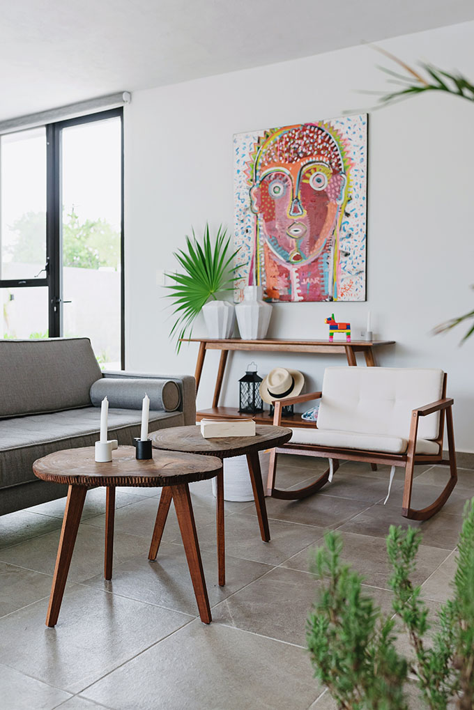 The light color of the walls along with the natural color of the woods aim to project freshness, establish unity with the rest of the materials used in the house to work as a canvas to display art.