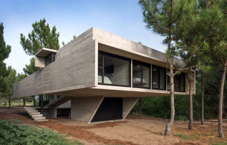 Luciano Kruk Arquitectos designed this stunning modern concrete two-family residence located in Buenos Aires, Argentina, in 2016. The house is built entirely out of exposed concrete, with minimalist interior spaces and little maintenance requirements. The house boasts two en suite bedrooms with their own closets and two cabin-like minimum rooms sharing a bathroom. Take a look at the complete story after the jump.