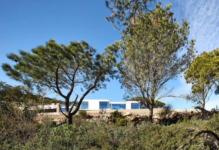 From the architects: Some houses close in on themselves when connection with their surroundings is not desirable. However, others open up to their setting when it is clear that it endows them with qualities and provides their raison d’être and hence must become an intrinsic part of the project. This is the case of the Juncal y Rodney home since it is built on a plot of land located on the Begur massif (Girona) in one of the most sublime settings of the Costa Brava. The longitudinal volume of the north-south-facing building of two storeys – the upper one with three bedrooms and the lower one with the shared spaces – is thus open to the Mediterranean and the series of mountains and coves that are glimpsed on the horizon.