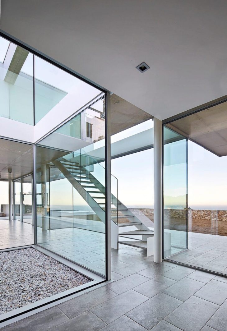 Pepe Gascón Arquitectura designed this stunning contemporary residence located in Costa Brava, Spain,in 2014. The house is built parallel with the access road, and it is sheltered by it. The entrance is thus located on the upper level and is directly connected to the roadway, while the level below features a series of small courtyards and gardens. The 2 storeys distinguish themselves with different designs: One is opaque and compartmentalised, while the other is open and diaphanous. Take a look at the complete story below.