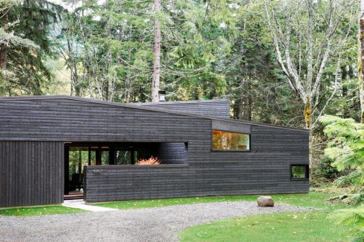From the architects: Designed by Robert Hutchison Architecture, this 2-bedroom wooded residence is located just outside Seattle in the shadow of Mt. Rainier. Clad in custom-run Western red cedar, the 1,900 square foot home quietly blends into the surrounding forest on the banks of the White River. An entry courtyard serves as a smooth transition from the outdoors while forming a gentile periphery to keep the ubiquitous elk herds at bay.