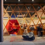 This lovely cabin nestled between large rocks and dense vegetation in Sandefjord, Norway, was designed by architecture firm Lund Hagem. The building has a roof that fits around the shapes of the rocks and an outdoor lounge space with seating arrangements and a fireplace at the rear of the cabin. Take a look at the complete story below.