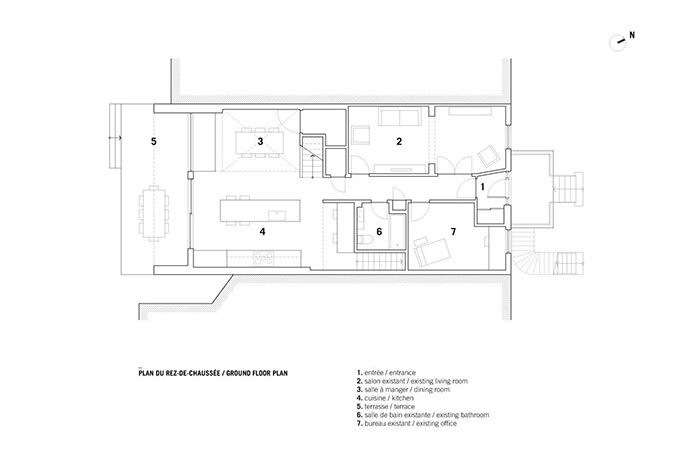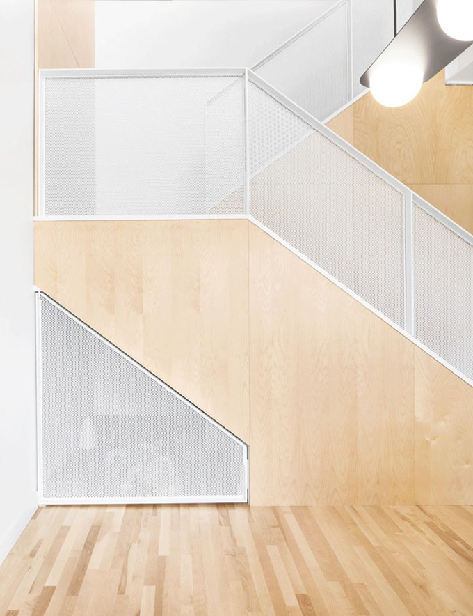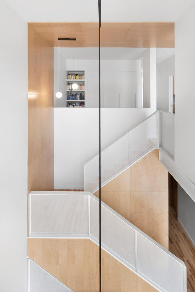 From the architects: The project consists of the transformation of a Montreal duplex into a single-family house. The architectural concept is build around a new staircase that joins the existing building to the courtyard extension.