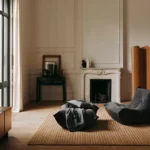 Material decisions remain controlled and deliberate. A limited palette of black, white, and weathered wood defines both the exterior and interior. This approach reduces visual noise and allows the owners’ art collection to define the atmosphere of the rooms. The architecture recedes, creating a setting that supports rather than competes with the objects placed within it.