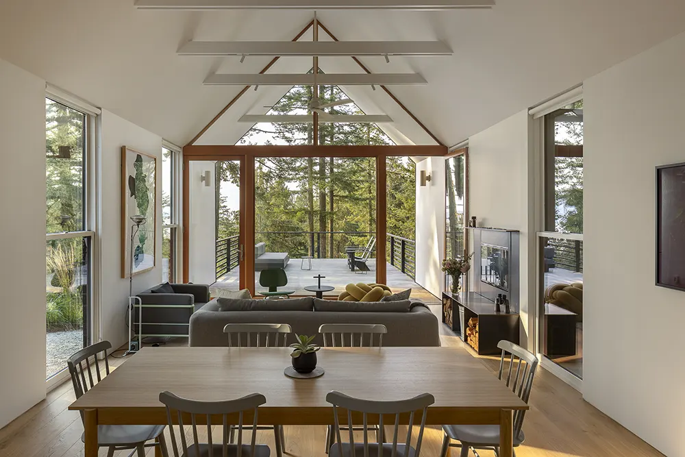 Despite its modest size, the house achieves a sense of expansion through height, light, and carefully framed views. Every decision supports a clear objective: to create a calm, efficient retreat that aligns with the routines of its owners. Doe Bay Retreat presents a precise response to site, budget, and program, showing how a restrained architectural approach can produce a focused and lasting result.