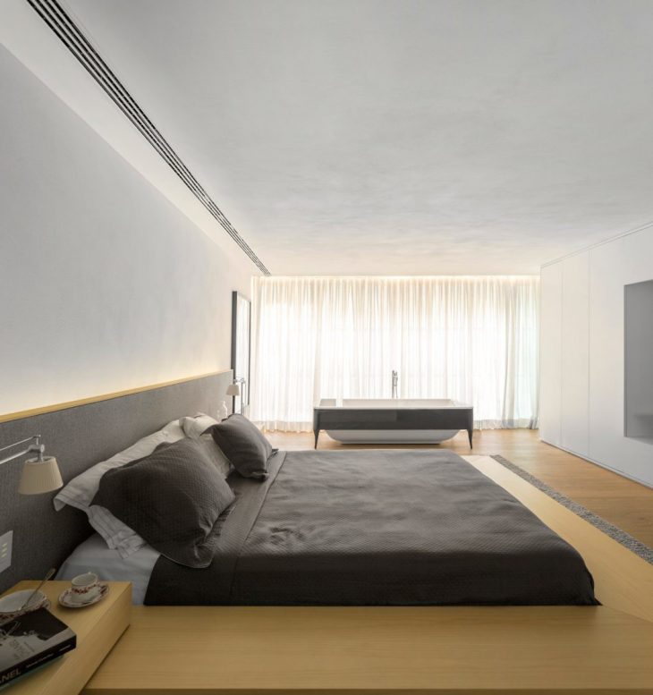 On the floor of the bedrooms, there are wooden brises-soleil that filter the external light, creating a sensation of climactic comfort even on the hotter days.